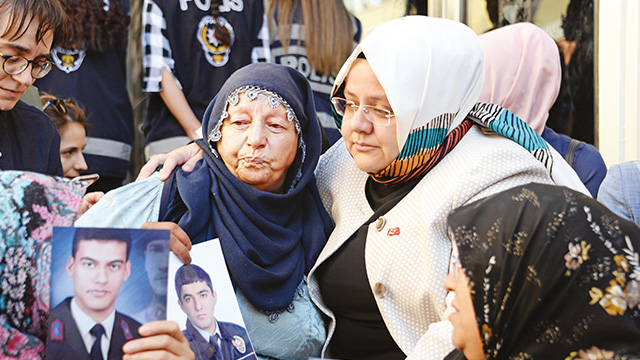 28 yaşındaki oğlu polis Vedat Kaya için eylem yapan Mardinli acılı anne Emine Kaya, “HDP oğlumu götürmüş, onların eline vermiş. Onların çocukları Amerika’da okuyor, niye çocuklarını göndermiyorlar? Çocuklarımızı alıp Kandil’e götürecekler. HDP, Kandil’dir” dedi. Gariban çocuklarının ölüme gönderildiğini belirten Kaya, oğlunun 24 Temmuz 2015’te Diyarbakır’da özel aracıyla yolculuk yaptığı sırada kaçırıldığını söyledi. HDP’ye ateş püsküren Kaya, “Bunlar Kürtler için değil, yüreklerimizi yakmak için çalışıyor” dedi.